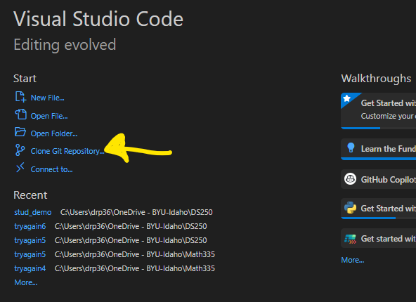 b. You are prompted to paste the url to the GitHub repository at the top of your VS Code screen