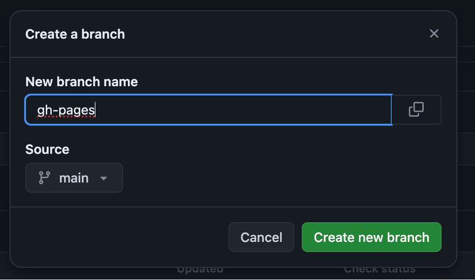 gh-pagesand click the Green ButtonCreate new branch