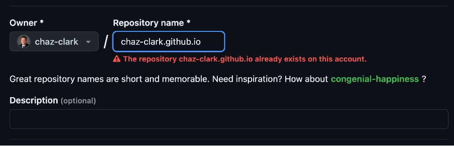 username.github.iowhere the username is your username on GitHub (Note: If theusernamepart of the repository doesn’t exactly match your username, it won’t work, so make sure to get it right.) - Click the Green Button