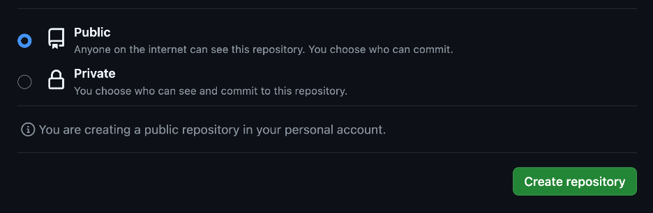 Choose public (it won’t matter too much at this point, you can always change it later)